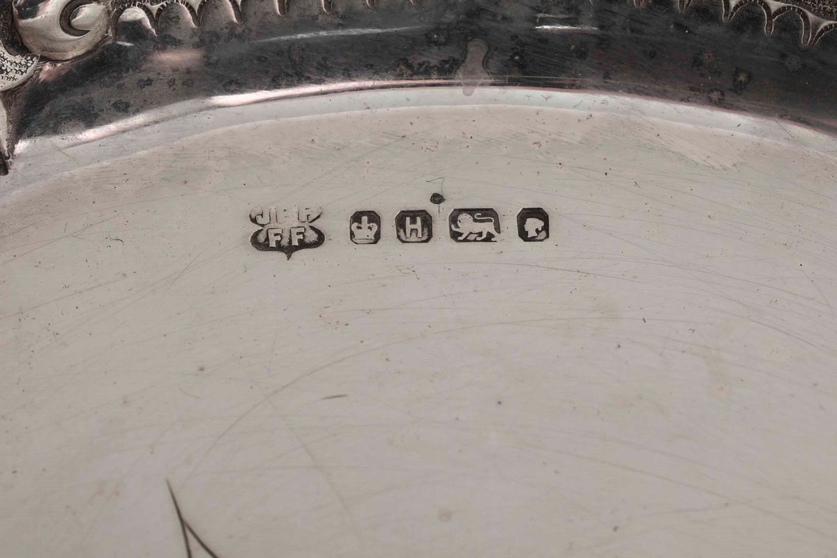 Piatto. Argento sterling fuso e cesellato. Inghilterra, marchio della città di Sheffield per l’anno 1875 e dell’argentiere (non identificato)