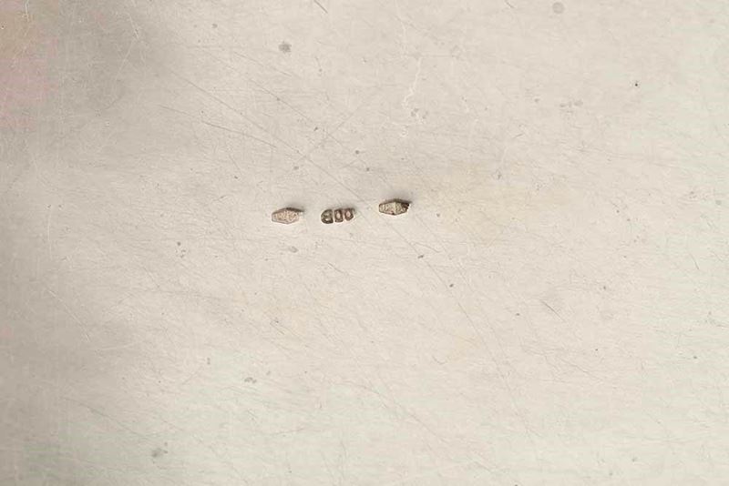 Portagioie. Argento fuso, sagomato e cesellato. Argenteria artistica milanese del XX secolo. Marchio con fascio littorio in uso dal 1935 al 1945