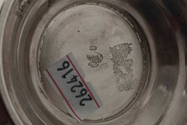 Servizio da tè e caffè. Argento fuso, sagomato ed ebanizzato. Argenteria artistica milanese della prima metà del XX secolo. Bollo con fascio littorio in uso dal 1835 al 1945. Argentiere Ganci