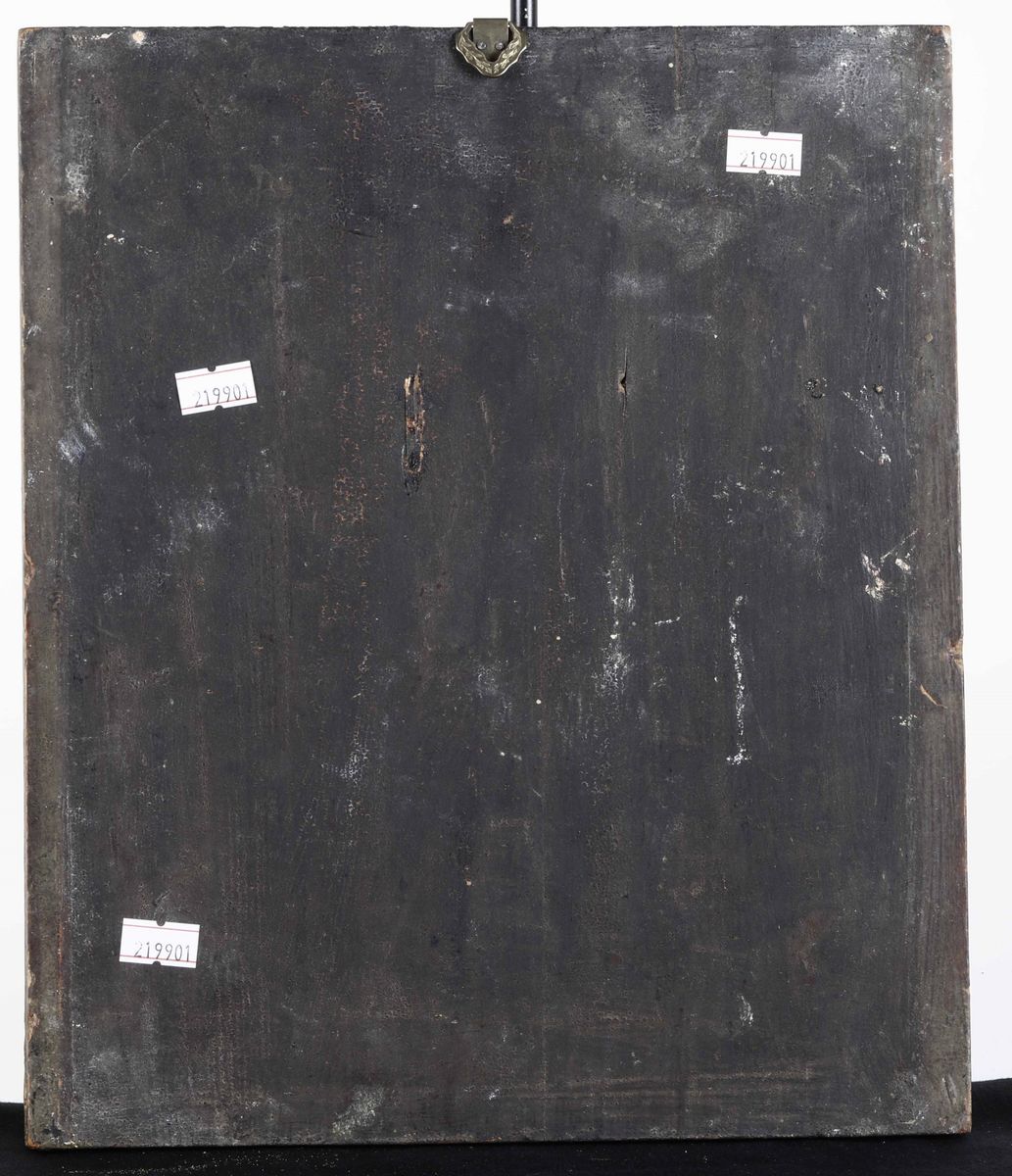Icona con crocifissione in bronzo fuso e dorato. Scuola russa XIX secolo.