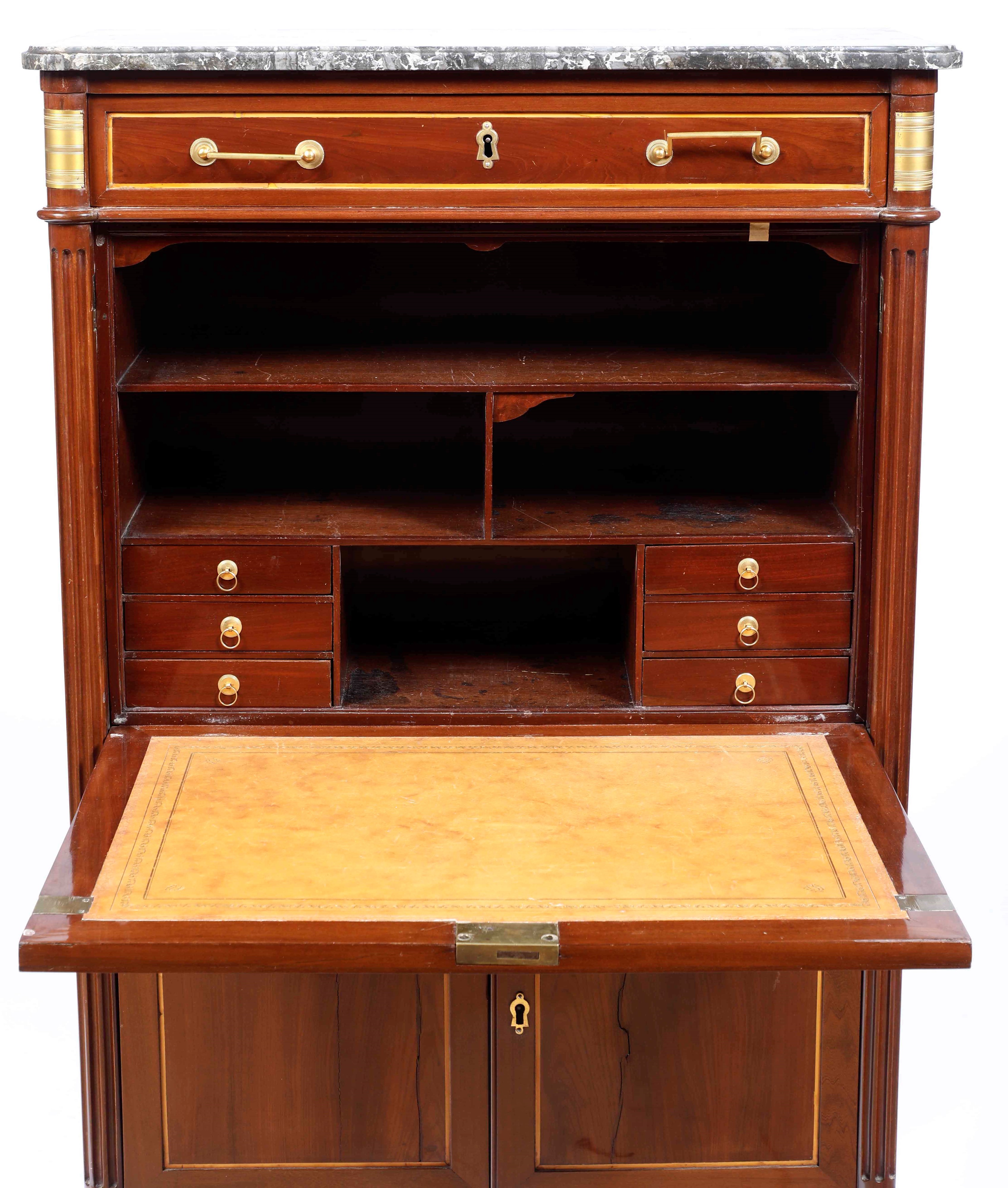 Secretaire lastronato e filettato. XIX secolo