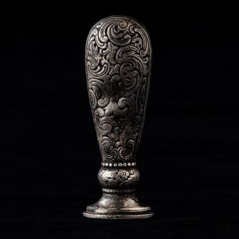 Sigillo in argento con decori vegetali incisi, Francia