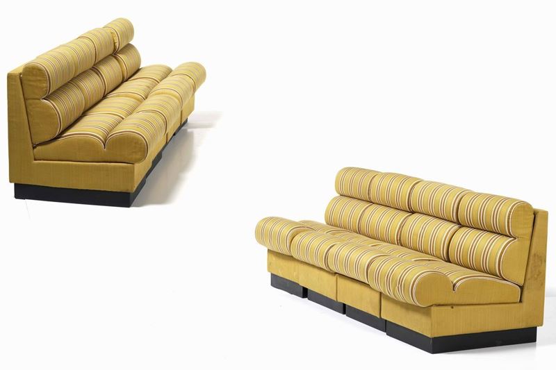 Otto moduli con struttura in legno e rivestimenti in tessuto.