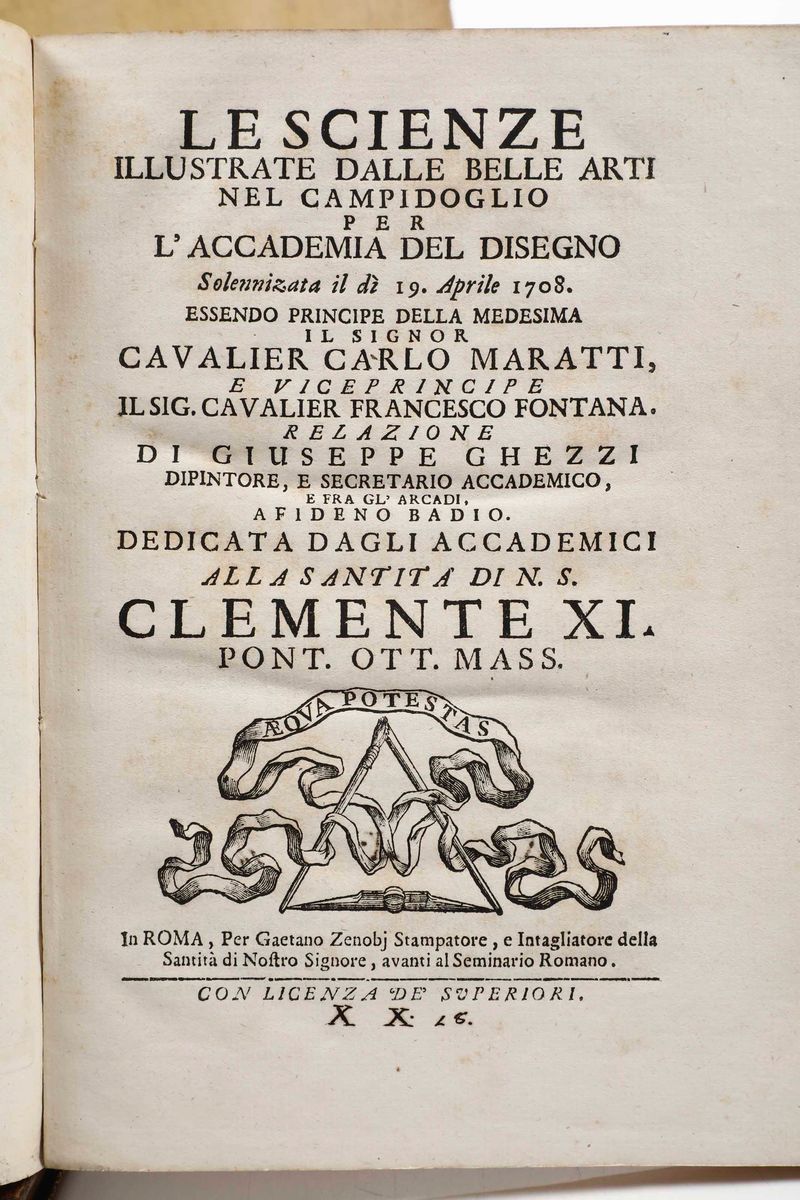 Le scienze illustrate dalle belle arti nel Campidoglio per l’Accademia del disegno...In Roma, Per Gaetano Zenobj Stampatore, e Intagliatore della Santità di Nostro Signore, avanti al Seminario Romano, (1708)