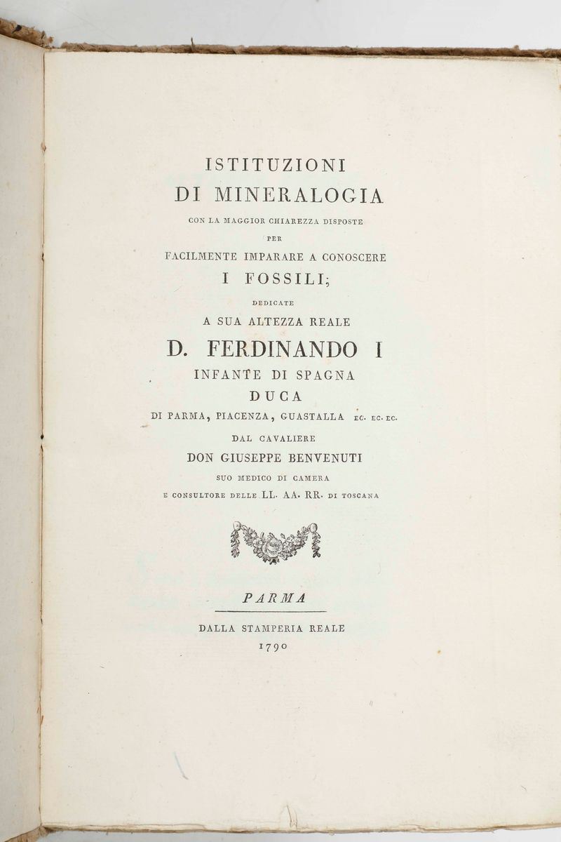 Benvenuti Giuseppe Istituzioni di mineralogia con la maggiore chiarezza disposte per facilmente imparare a conoscere i fossili... Parma, Dalla Stamperia Reale (Bodoni), 1790