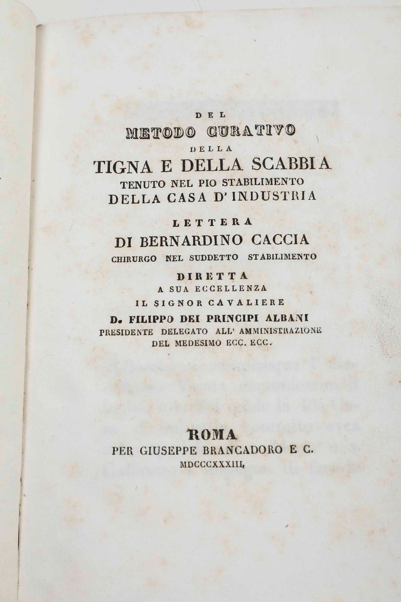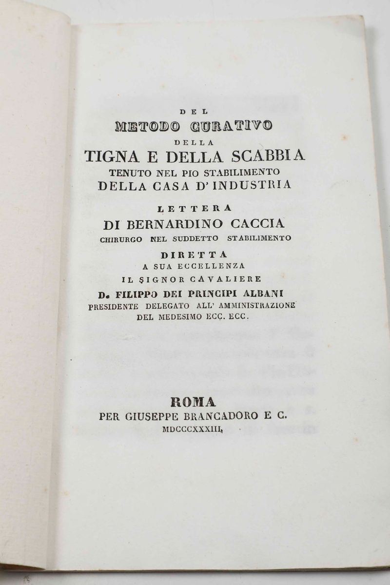 Del metodo curativo della tigna e della scabbia tenuto nel pio stabilimento della casa d’industria...Roma, Per Giuseppe Brancadoro E C., 1833