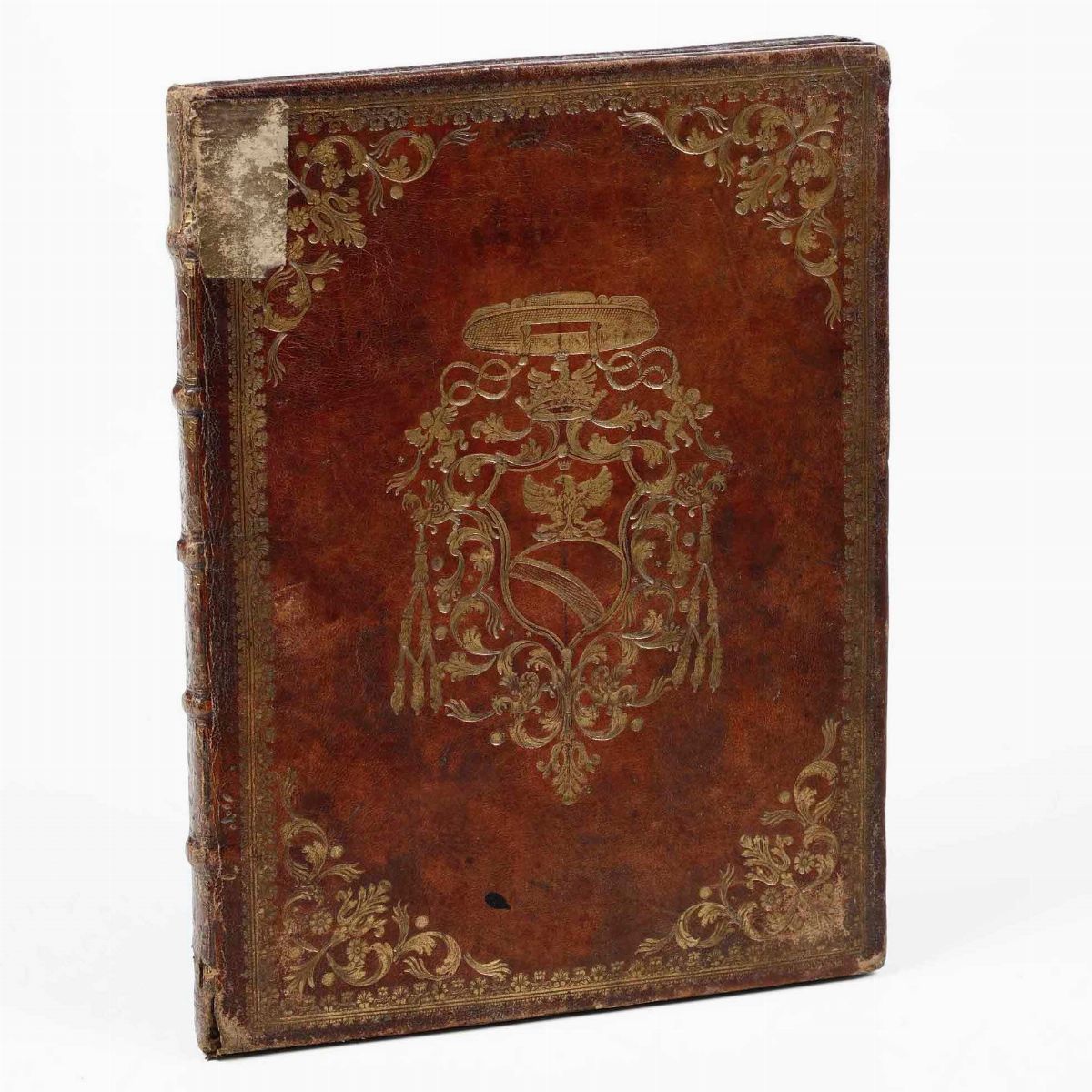 In-4°. Legatura coeva in piena pelle nocciola. Fregi in oro al dorso e ai piatti. Armi vescovili non identificate.