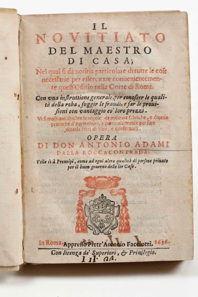 Il Novitiato del Maestro di casa...In Roma, Appresso Pietr’Antonio Facciotti, 1636