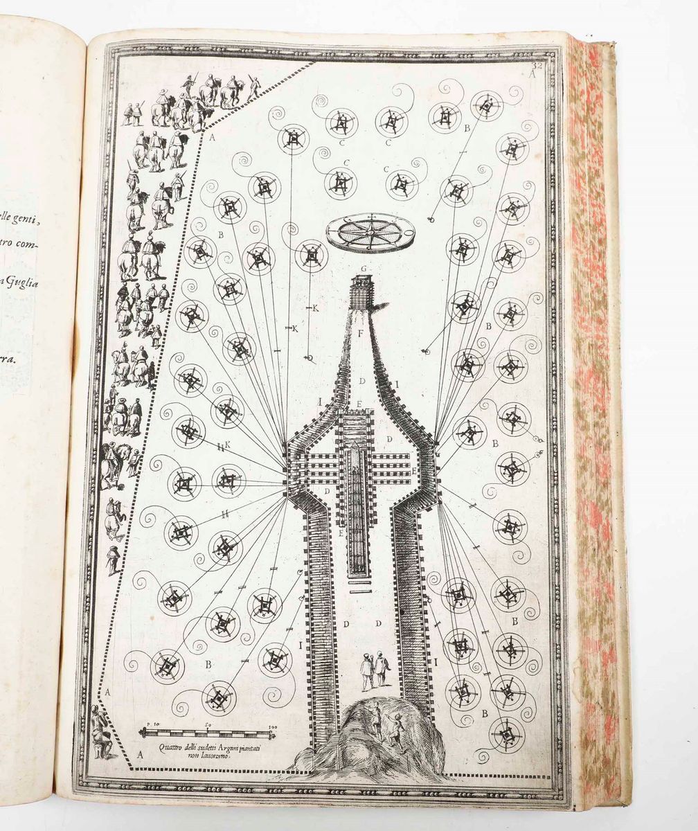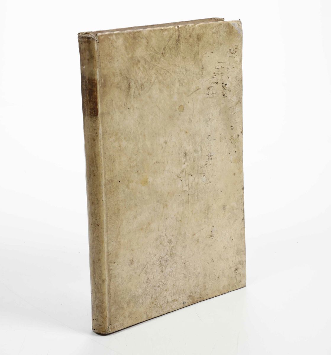 In-folio. Legatura in piena pergamena del secolo XIX. Esemplare piuttosto modesto. Frontespizio applicato su carta e parzialmente integrato a penna come pure il ritratto che presenta una macchia d’unto piuttosto diffusa. Alcune carte lacunose. Parzialmente scompleto, proposto come raccolta di incisioni.
