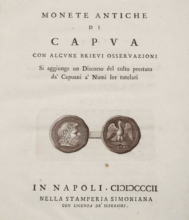 Monete antiche di Capua... in Napoli, nella stamperia Simoniana, 1802.