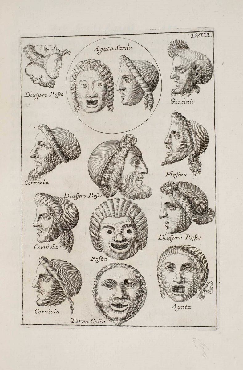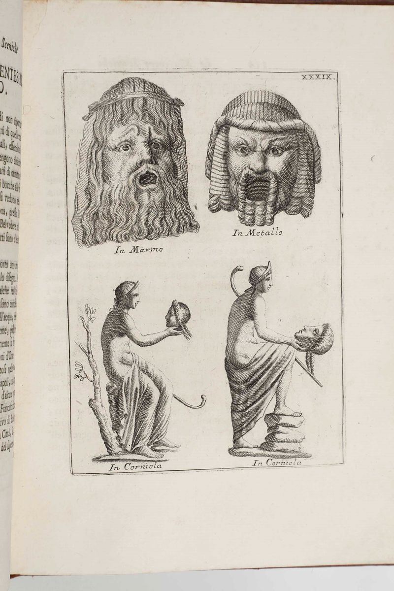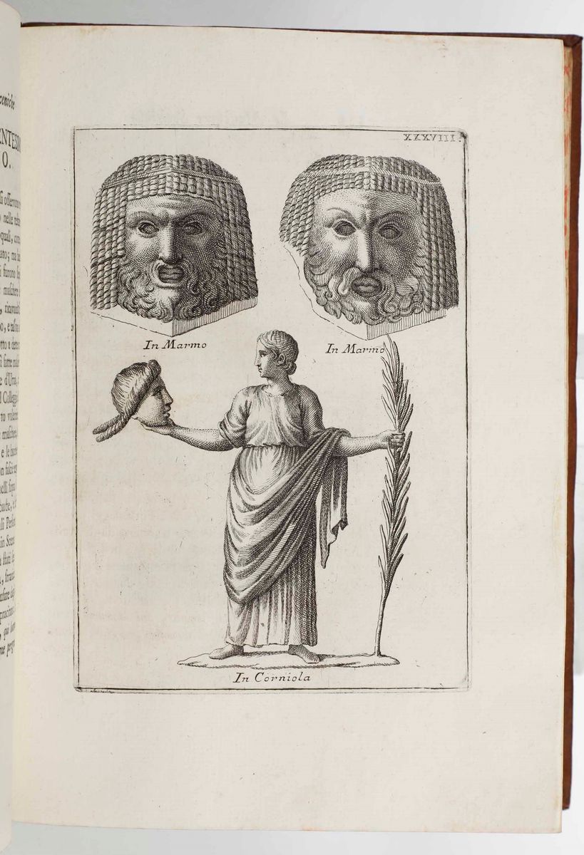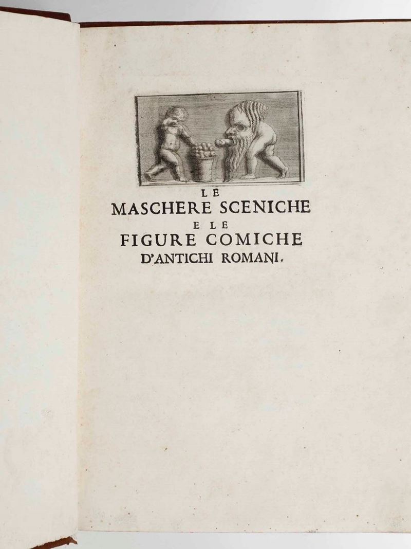 Le maschere sceniche e le figure comiche d’antichi romani...In Roma, nella stamperia di Antonio de’ Rossi, 1736
