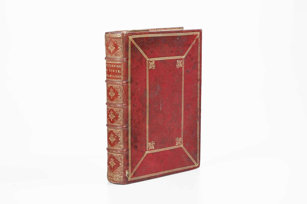 In-4°. Bella rilegatura coeva in piena pelle con ricchi fregi in oro al dorso. Piatti inquadrati entro filetti in oro. Tagli dorati. Bell’esemplare
