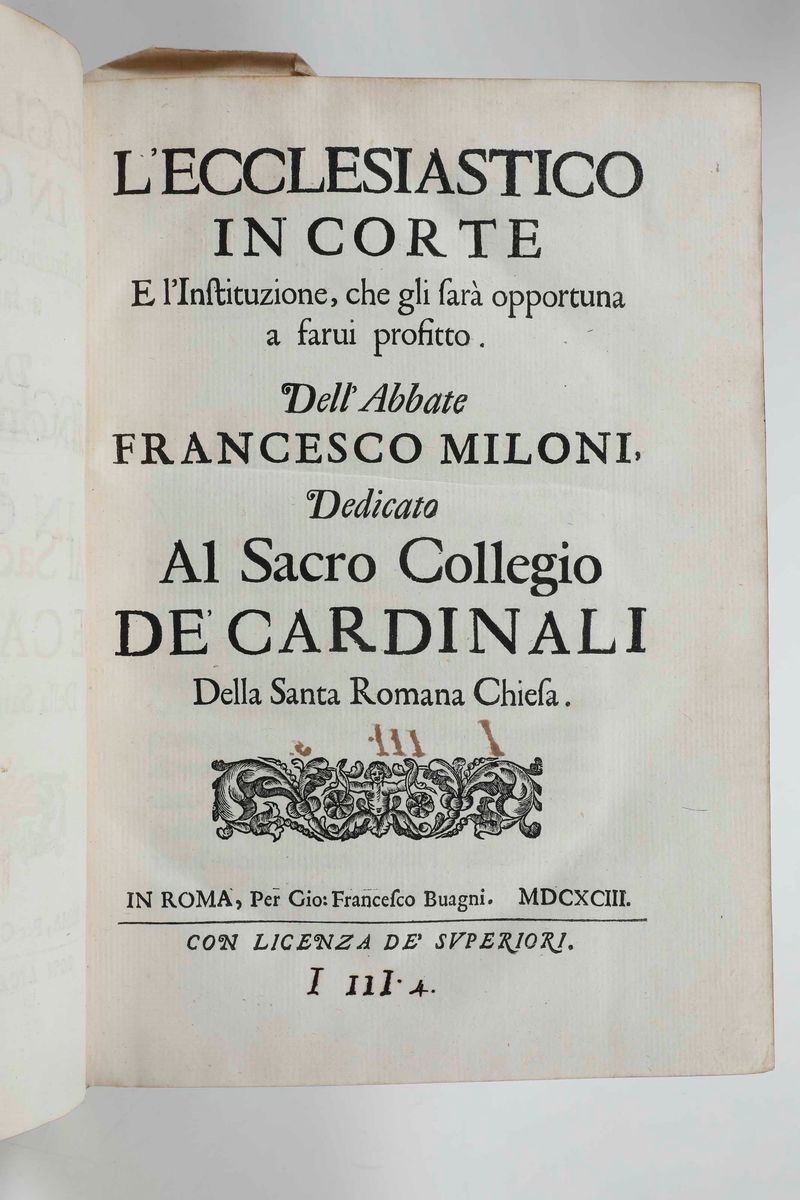 L’ecclesiastico in corte e l’instituzione, che gli sarà opportuna a farvi profitto...in Roma, per Gio Francesco Buagni, [..]