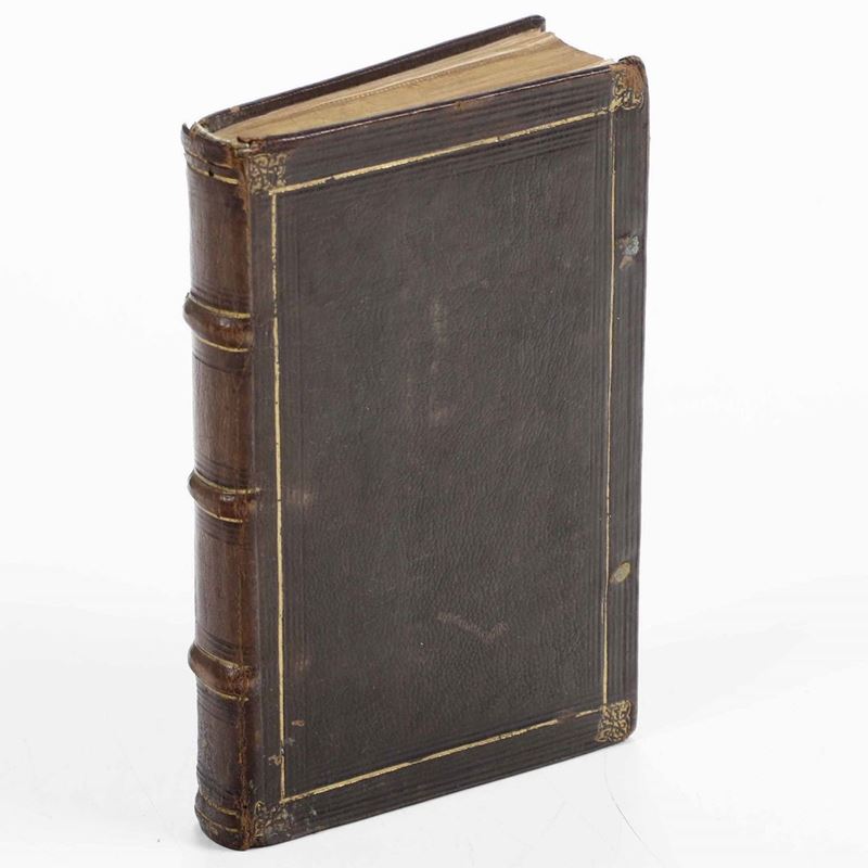 In-8°. Elegante e sobria legatura del secolo XVII. Ex libris manoscritto seicentesco alla prima carta bianca. L’esemplare risulta integrato da anonima mano seicentesca, di alcune parti manoscritte, meritevoli di studio, inserite in legatura all’inizio e alla fine del libro.