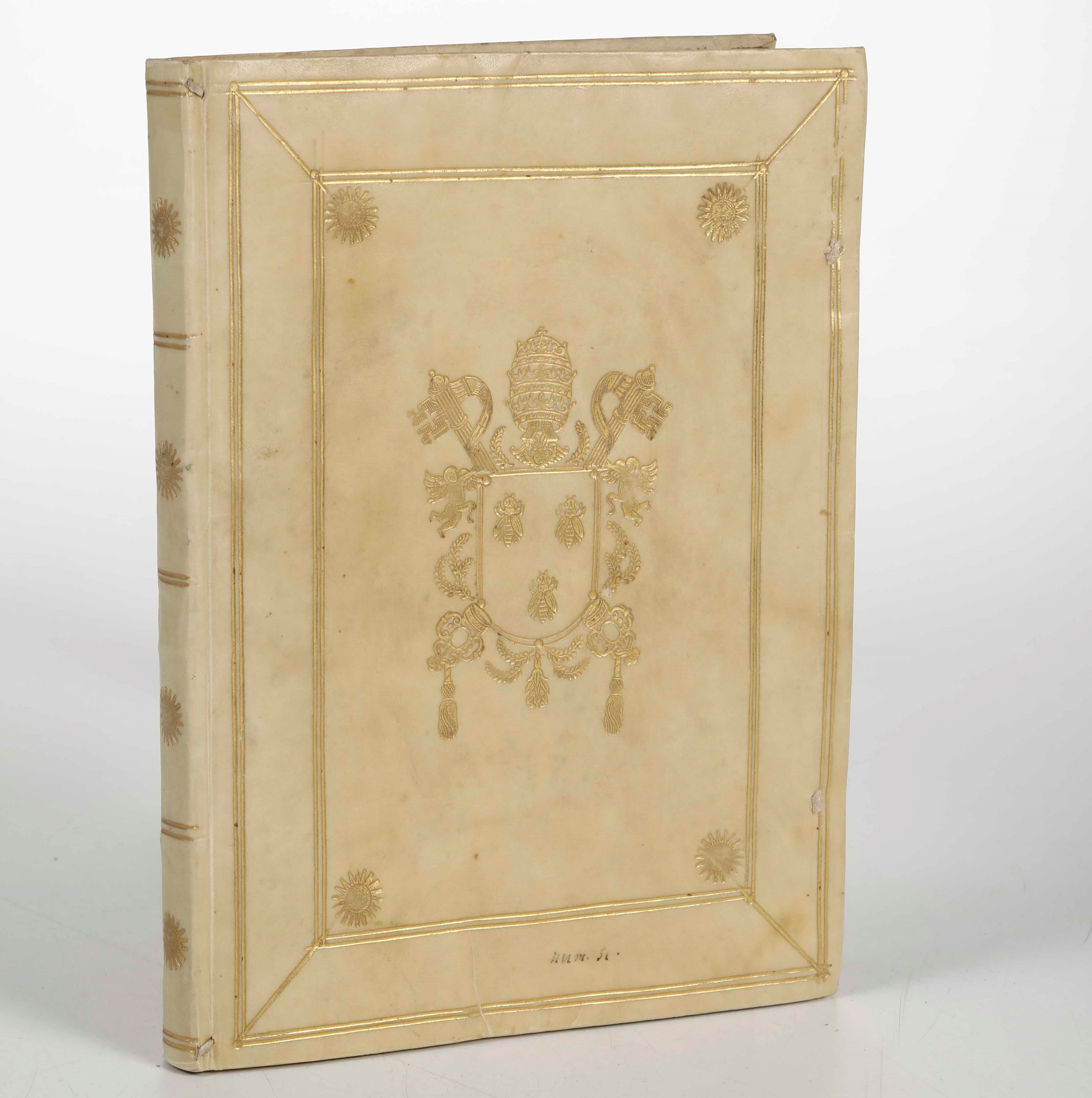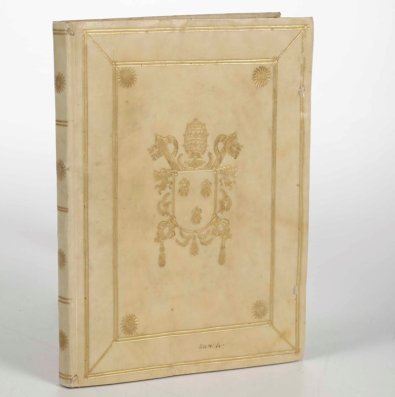Legatura alle armi papali Barberini (Urbano VIII). Manoscritto miscellaneo di vari argomenti. 96 carte più un fascicolo aggiunto fuori rilegatura. XVII secolo
