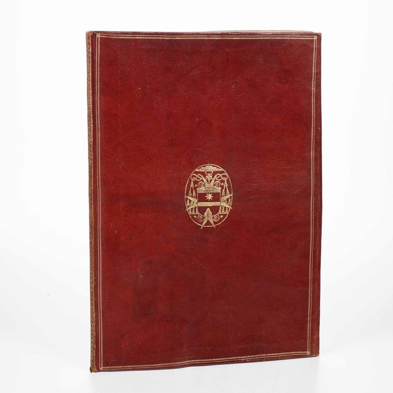 In-folio. Bella rilegatura coeva in marocchino rosso a cartella. Armi cardinalizie e croce di Malta ai due piatti.