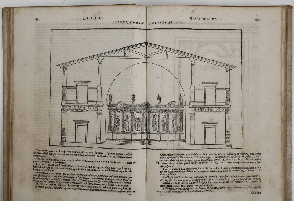 In-folio. Legatura in piena pergamena rigida del secolo XIX. (20) + 375 + (1) p. Leggere macchie e brunitura che interessa le prime carte. Per altro esemplare bello e fresco. Prima edizione con commento del Barbaro.