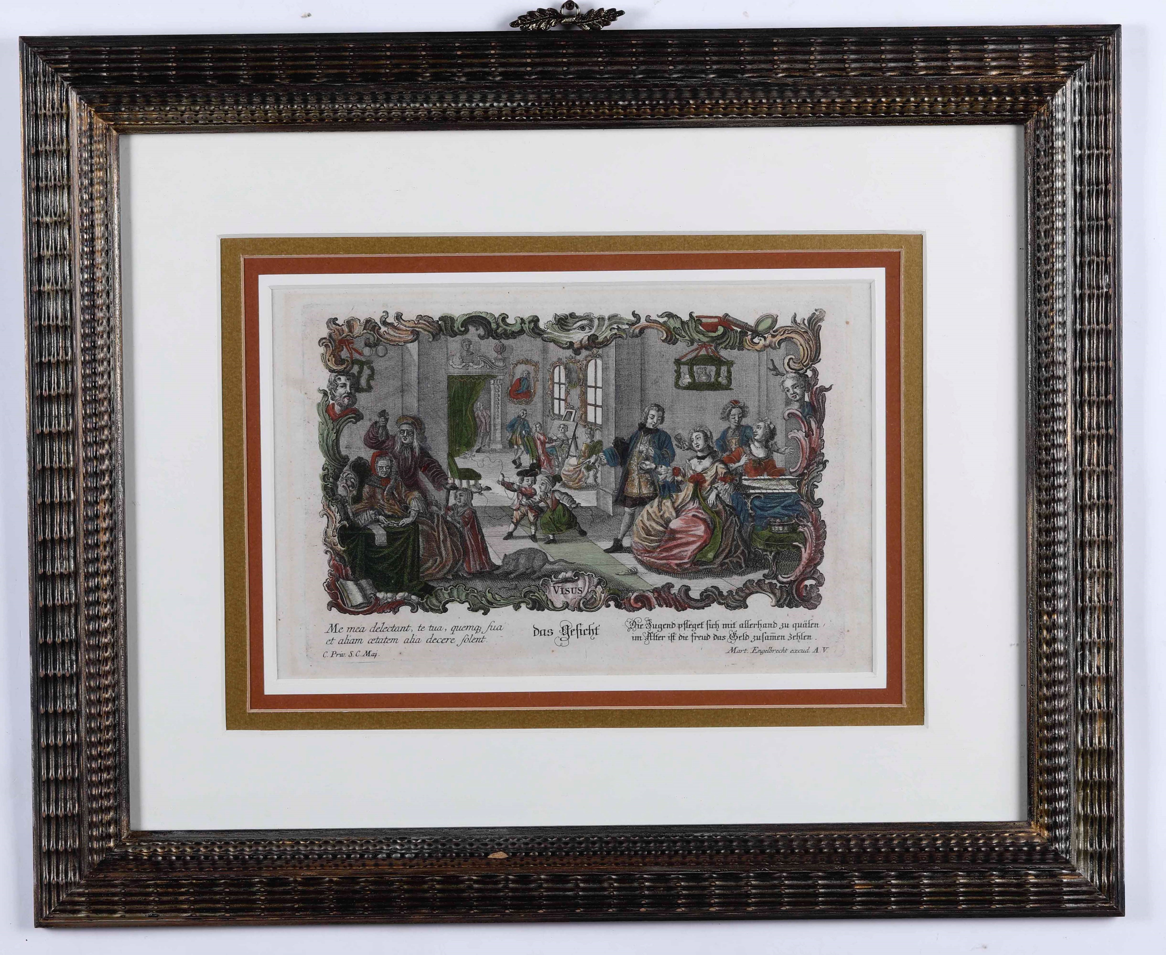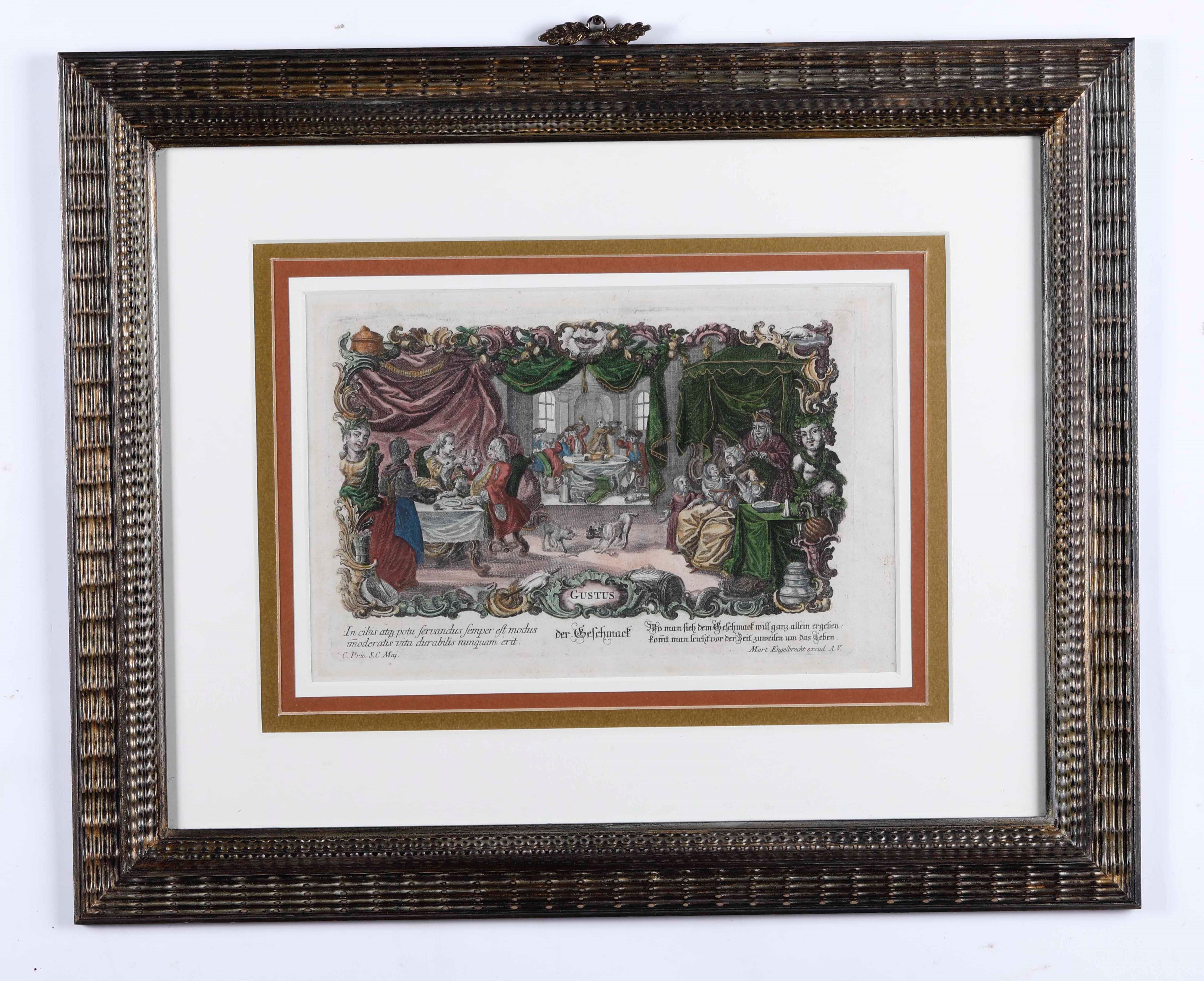 Martin Endelbrecht (1684-1756) I cinque sensi. Serie completa di incisioni originali a bulino, con coloritura coeva. Metà secolo XVIII