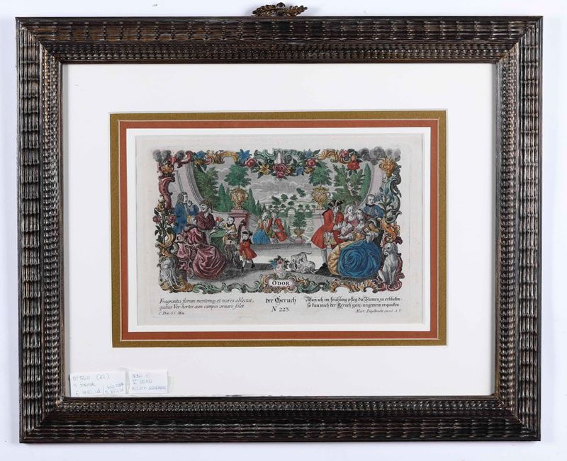 Martin Endelbrecht (1684-1756) I cinque sensi. Serie completa di incisioni originali a bulino, con coloritura coeva. Metà [..]