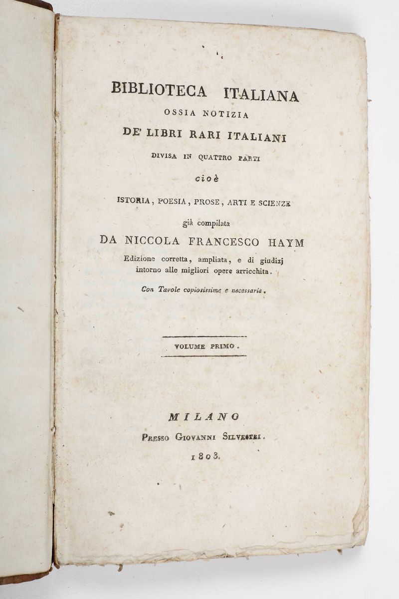 Biblioteca italiana ossia notizia de’ libri rari italiani...Milano, Presso Giovanni Silvestri, 1803 (4 volumi)