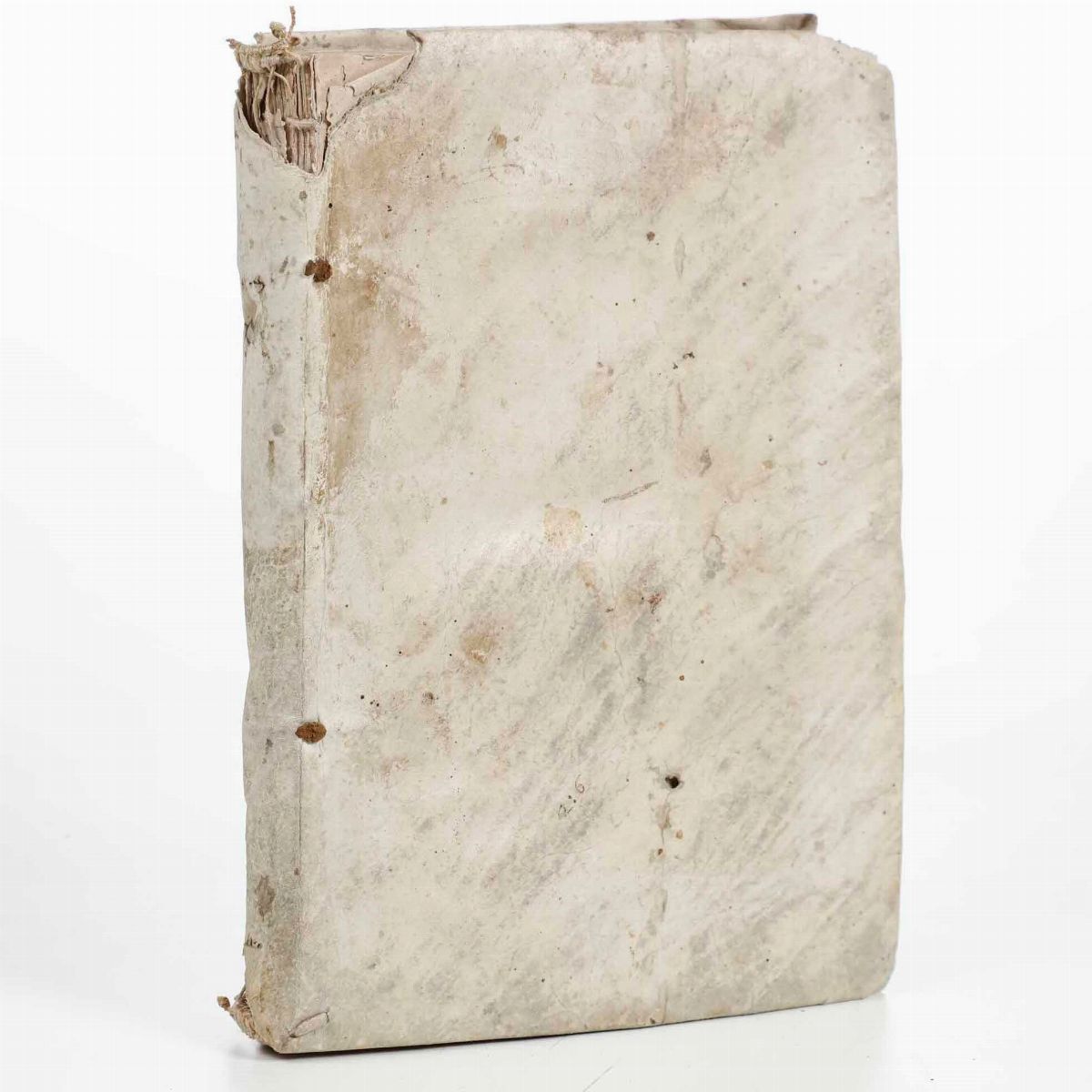 In-4°. Rilegatura coeva in pergamena floscia con mancanza alla cuffia superiore. Brunitura dovuta alla qualità della carta