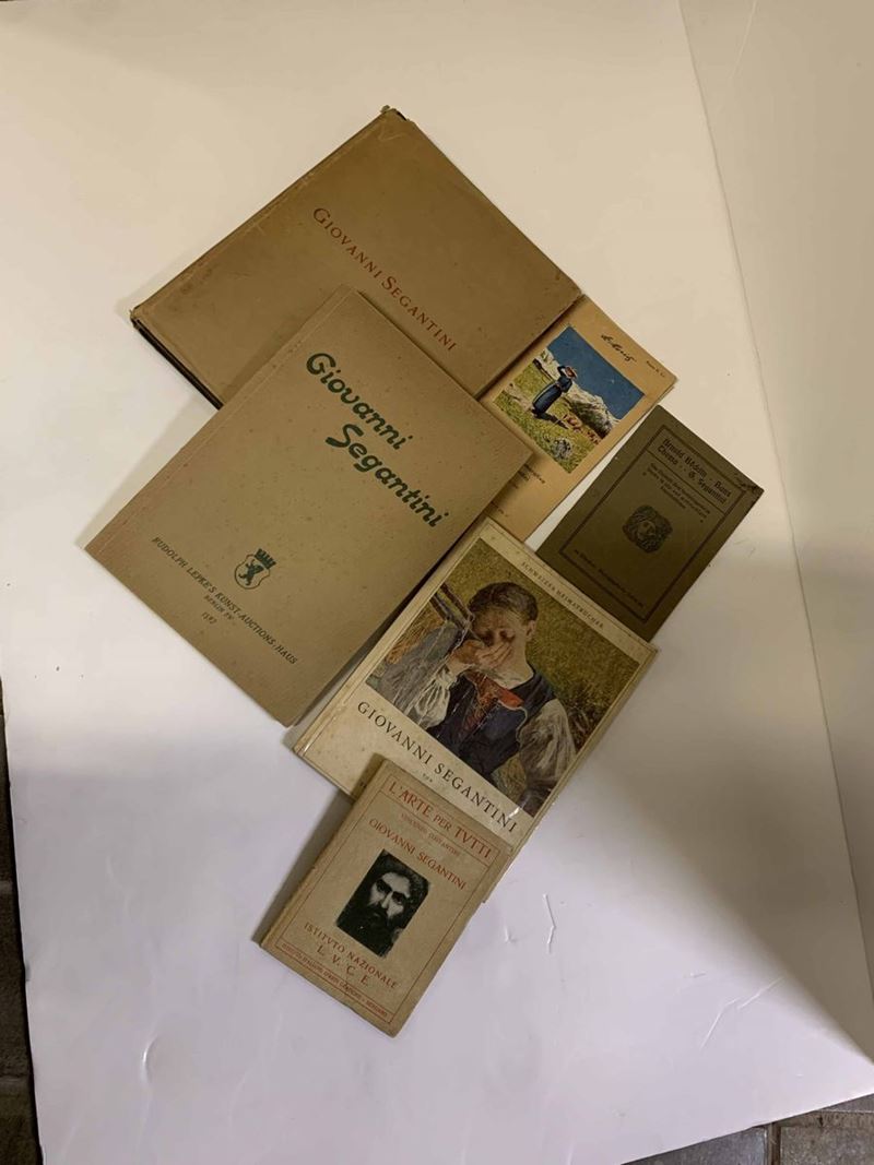 Al lotto si aggiungono: (testo a cura di) Gottardo Segantini - Giovanni Segantini, la sua vita e le opere, Photographische Union, Monaco di Baviera 1920. / Primo Levi - Segantini. Il primo ed il secondo Segantini, Soc. Edit. Alighier, Roma 1900. / Giovanni Segantini - Text und Anordnung von Gottardo Segantini, Switzerland 1949. / Federico Petriccione - Giovanni Segantini, collana “Capolavori della pittura”, Istituto Geografico De Agostini, Novara 1945. E altri volumi nel lotto