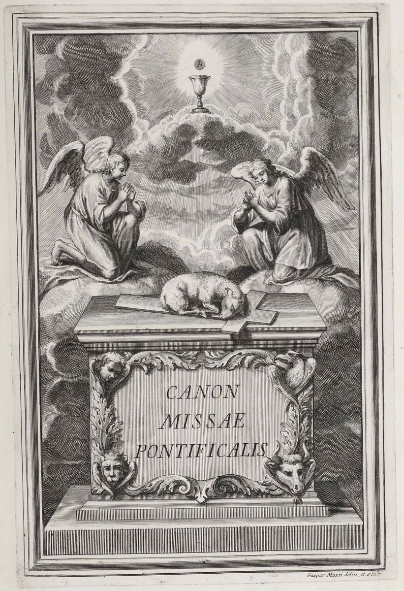 Canon Missae ad usum episcoporum, ac praelatorum solemniter, vel private celebratium, Ex Typographia Venerabilis Cappellae Sanctissimi Sacramenti, Apud Antonium Fantauzzi Typographum, Urbini, 1727.