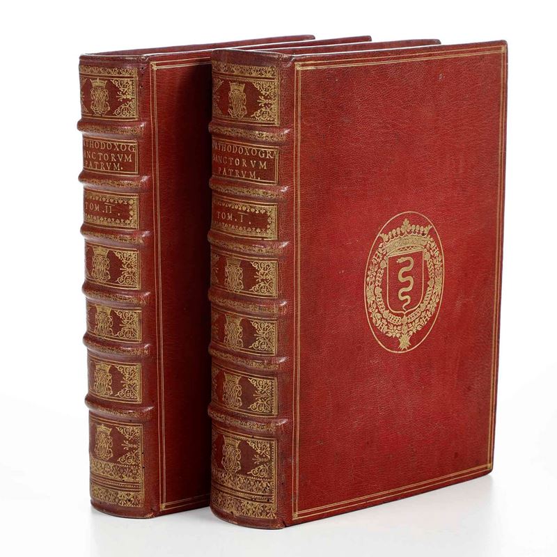In-folio. Due volumi ex libris Biblioteca Colbertina. Legature del secolo XVIII alle armi riconducibili all’ex libris manoscritto. Esemplari eleganti e in bella conservazione ma che presentano alcune pagine mancanti (da pagina 417 a pagina 432 del tomo I) supplite manoscritte nel secolo XVIII in elegante grafia. Al secondo volume anche una parte dell’index posto in fine risulta integrata manoscritta in elegante grafia, nel secolo XVIII.