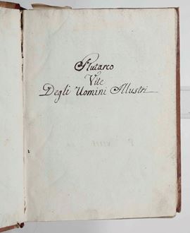 In-folio. Legatura in mezza pelle e punte del secolo XVII. Probabile edizione incunabola di queste Vite, purtroppo acefale e mutile anche in fine. Mancanti almeno delle prime 10 carte e delle ultime 3.
