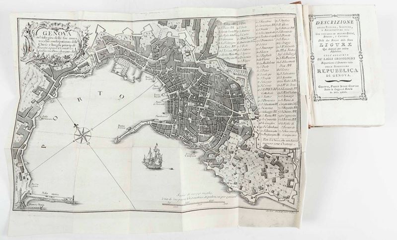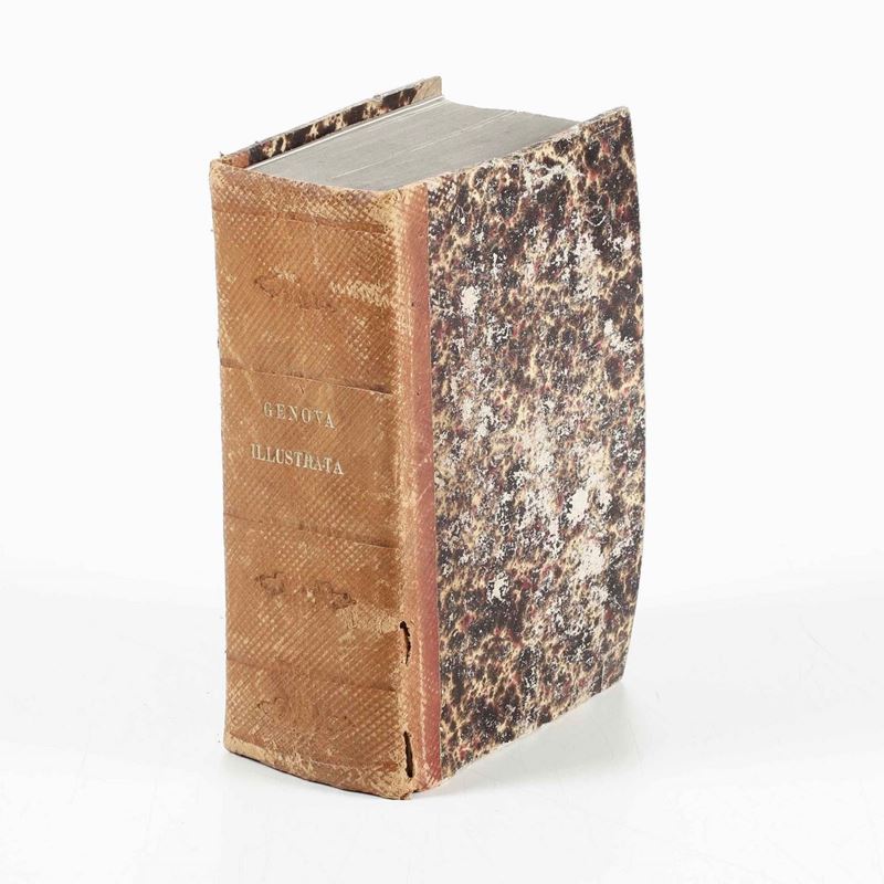 In-16°. Rilegatura in mezza pelle del secolo XIX (abrasioni e difetti). Nel nostro esemplare è rilegata prima la "Descrizione" rispetto all'"Istruzione". 20 belle tavole calcografiche, opera del Guidotti e 63 ritratti di artisti genovesi. La monografia di riferimento per quest'opera "Norma Dallai Belgrano - Gravier e Beuf, librai-editori e Guide Illustrate di Genova fra '700 e '800... Bollettino bibliografico La Berio, anno XXVI 1-2, Gennaio-Agosto 1986", elenca 64 nominativi e 69 tavole fuori testo raffiguranti ritratti. Nel nostro esemplare ne sono presenti 63.