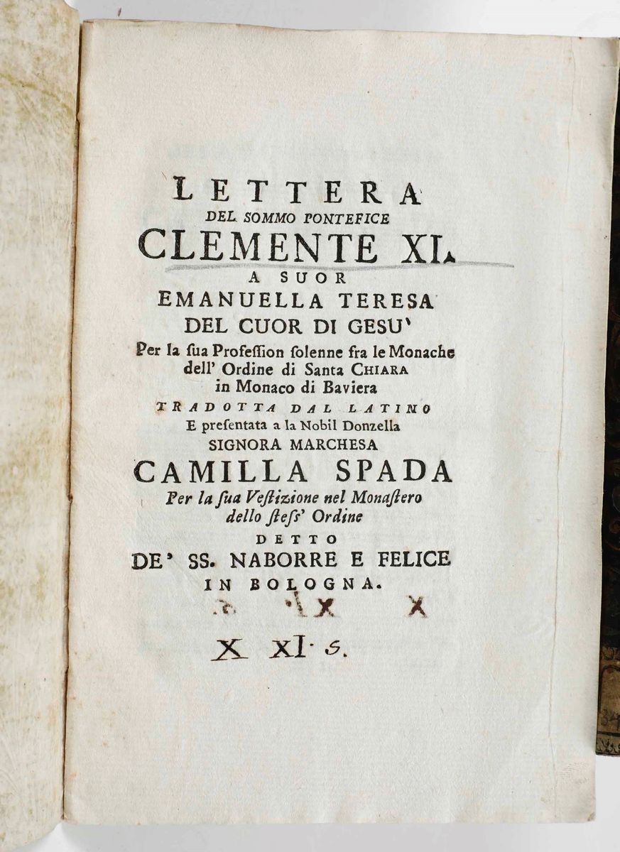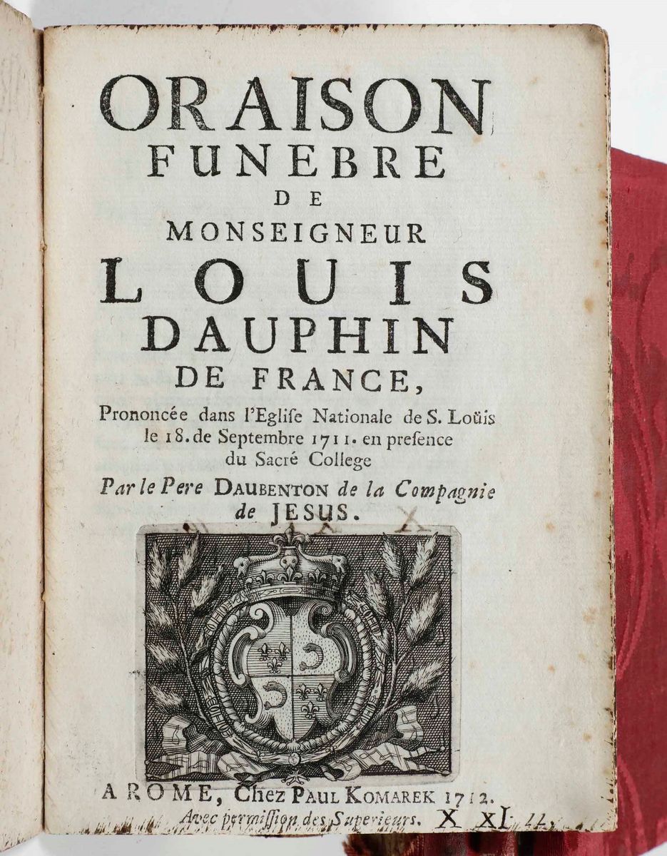 In-12°. Bella rilegatura coeva in pelle rossa con fregi oro al dorso. Tagli in oro.