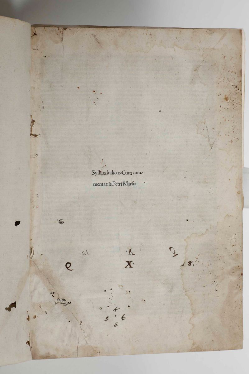 Syllius Italicus. Opera Syllius italicus. Cum Commentariis Petri Marsi. Venetiis, Boneti Locatelli, 1492.