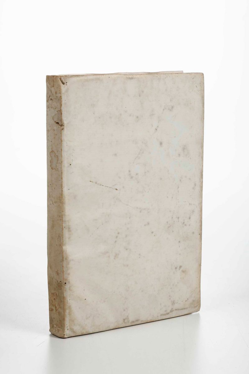 In-folio. 154 Carte non numerate (su 156). Scompleto. Mancante della carta u 1(151) e della carta u 6(156) con la marca tipografica. Rilegatura in piena pergamena cinquecentesca. Antica segnatura alla prima carta. Piatti parzialmente staccati. Fori di tarlo al margine interno. Una carta staccata (cc. 128 - q8)