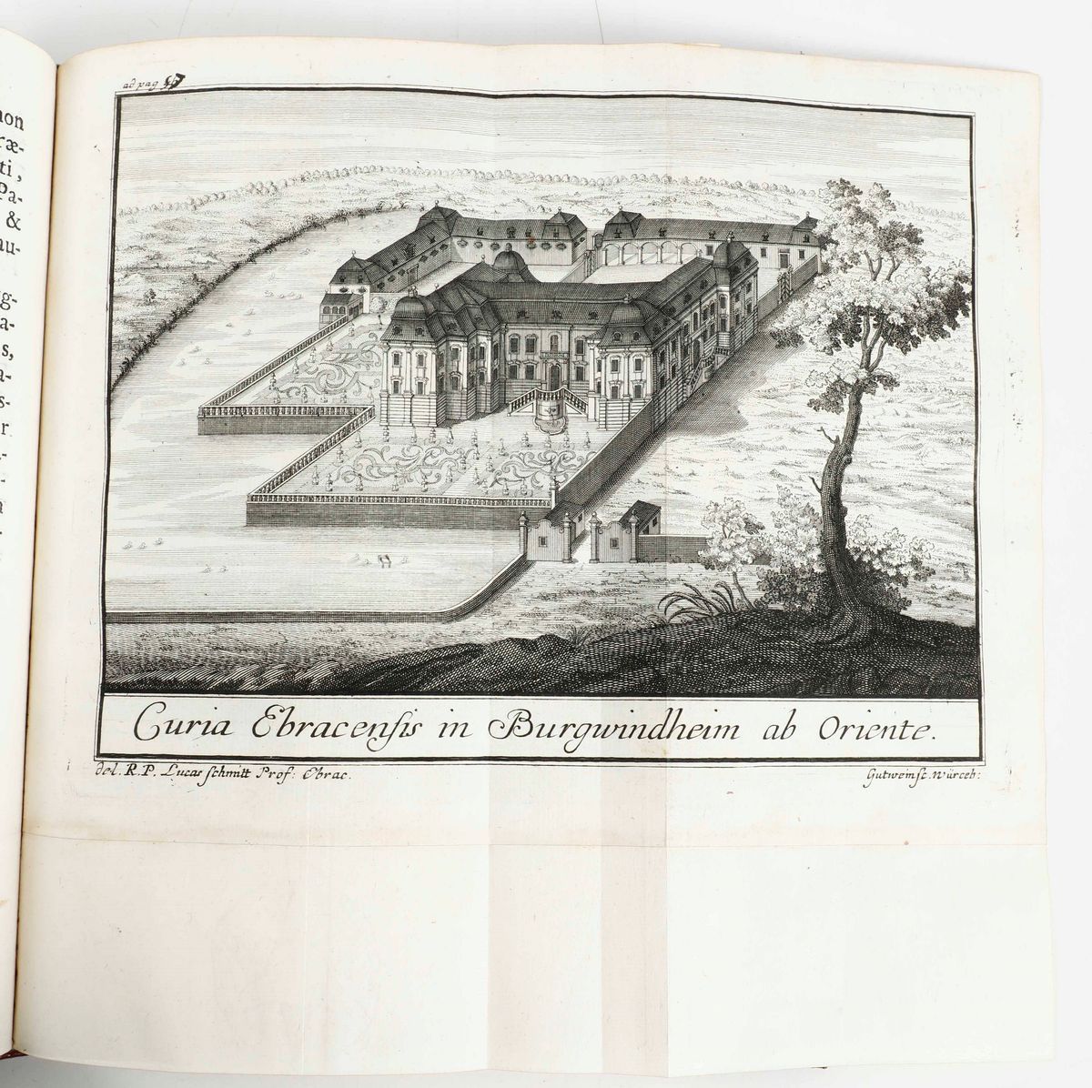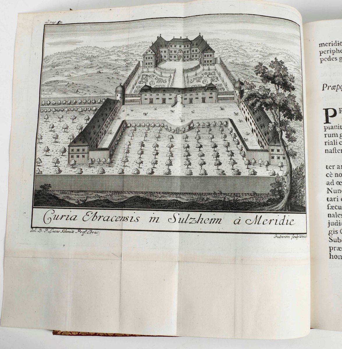 In-4°. Bella rilegatura coeva in marocchino rosso con ricchi fregi in oro. Armi cardinalizie e Croci di Malta di due paitti. Tagli dorati. 17 tavole (di cui 5 ripiegate). Bell’esemplare.