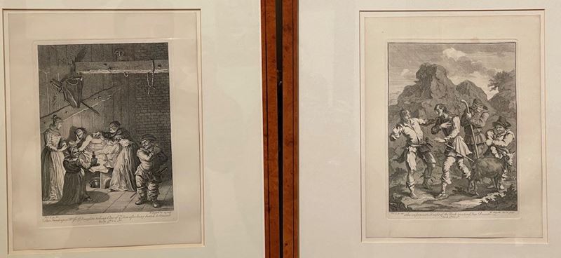 Tre acqueforti originali, firmate in lastra La fiera di Southwark, 1733-1734, Don Chisciotte curato nella locanda, 1726 [..]