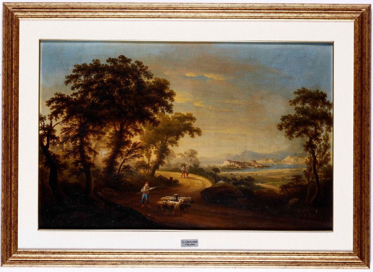 Giuseppe Gherardi (1788-1884) Coppia di paesaggi con figure