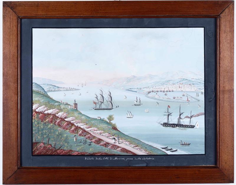 Ignoto del XIX secolo Veduta della città di Messina presa dalla Calabria