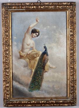 Pittore del XIX-XX secolo Figura femminile con pavone