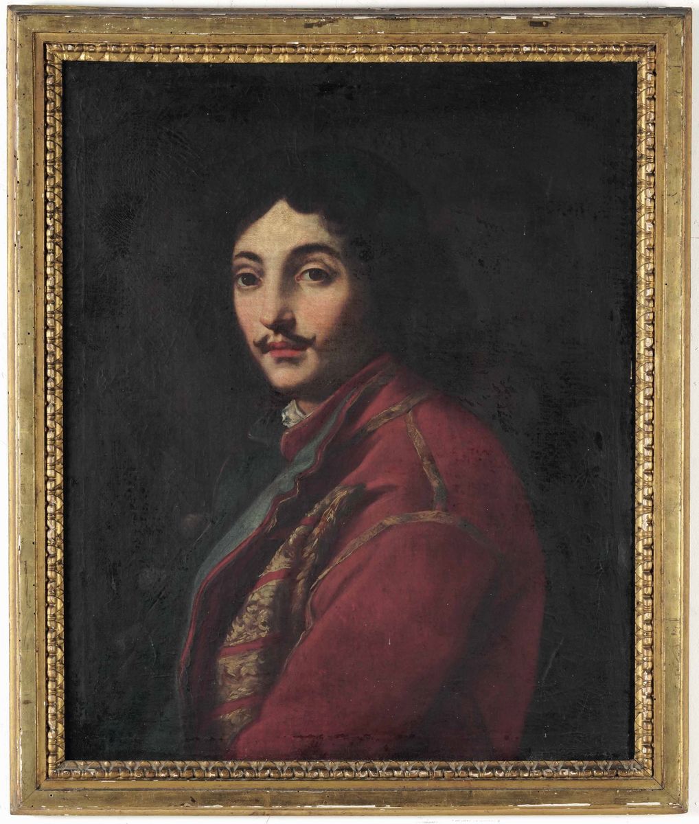 Scuola del XVII secolo Ritratto di uomo con giubba rossa