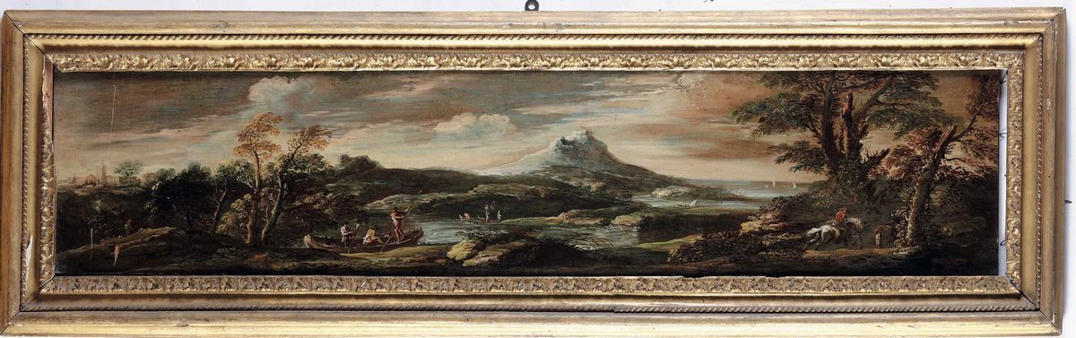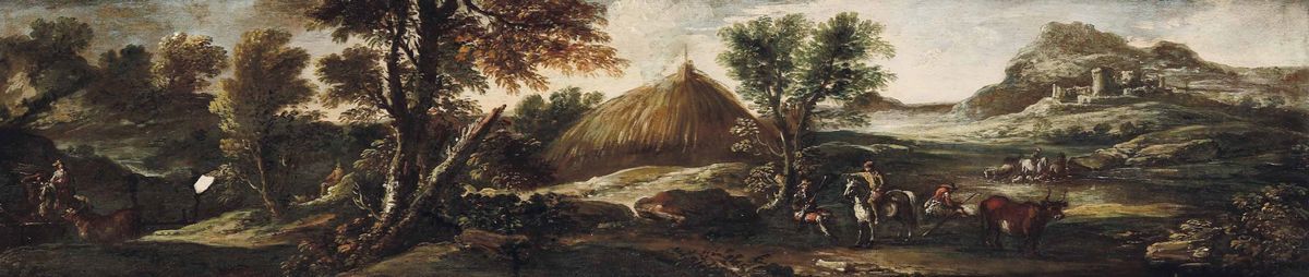 Scuola italiana del XVIII secolo Paesaggi con pescatori e pastori