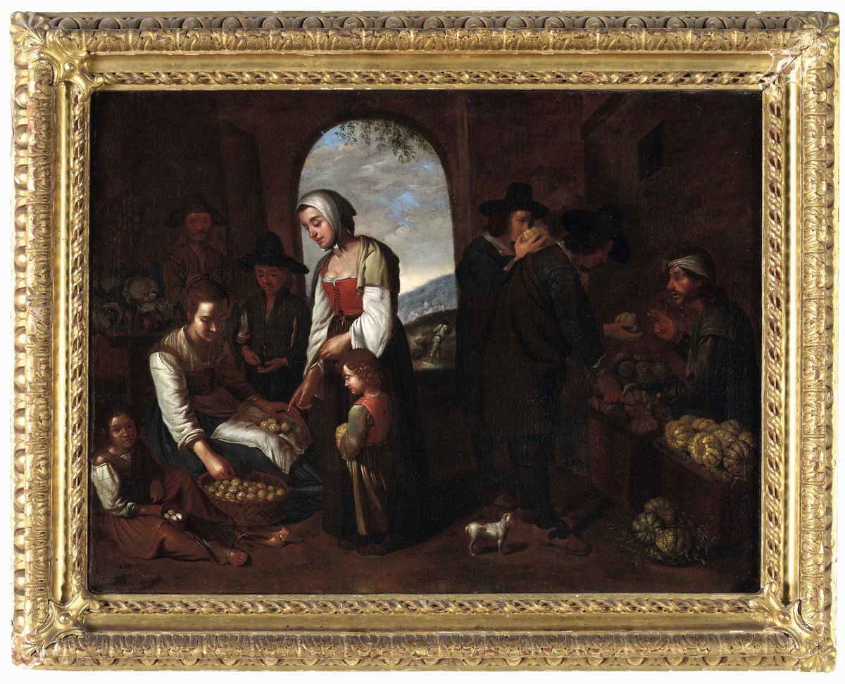 Artista fiammingo attivo a Roma nel XVII secolo Scena di mercato