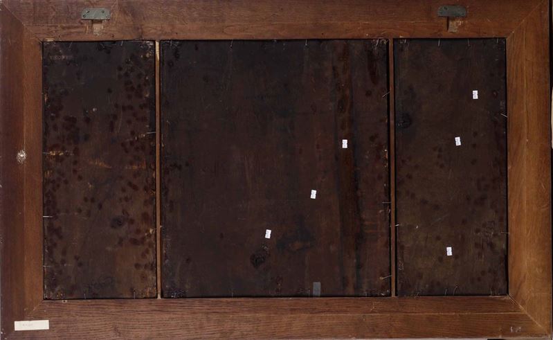 Scuola del XVI secolo Madonna con Bambino, San Giovannino, Santo Stefano, un santo e un giovane devoto