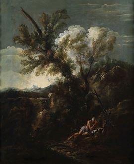 Sebastiano Ricci (Belluno 1659 - Venezia 1734) e Antonio Francesco Peruzzini (Ancona 1643 - Milano 1724) Paesaggio con santa Maria Maddalena penitente