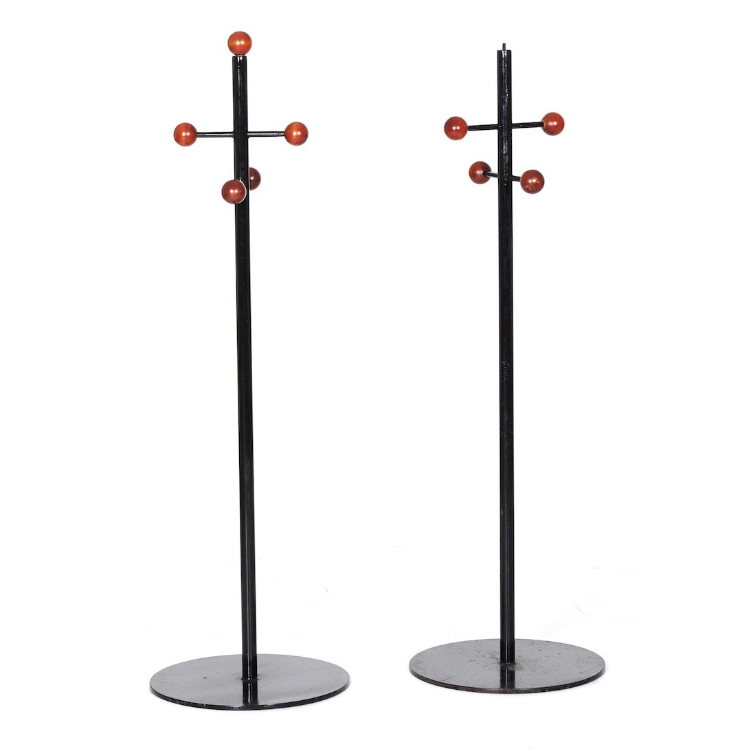 Coppia di appendiabiti a stelo con ganci sferici, XX secolo