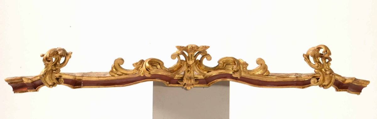 Coppia di mantovane in legno laccato e dorato, XVIII-XIX secolo