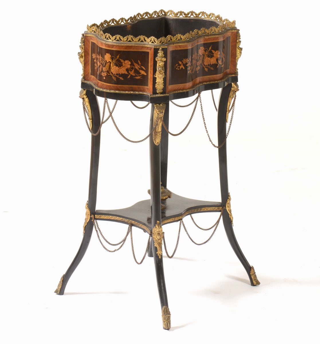 Fioriera Napoleone III lastronata ed intarsiata. XIX secolo