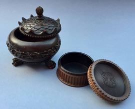 scatola diametro cm 8, altezza cm 4; grolla diametro cm 10, altezza cm 10,5