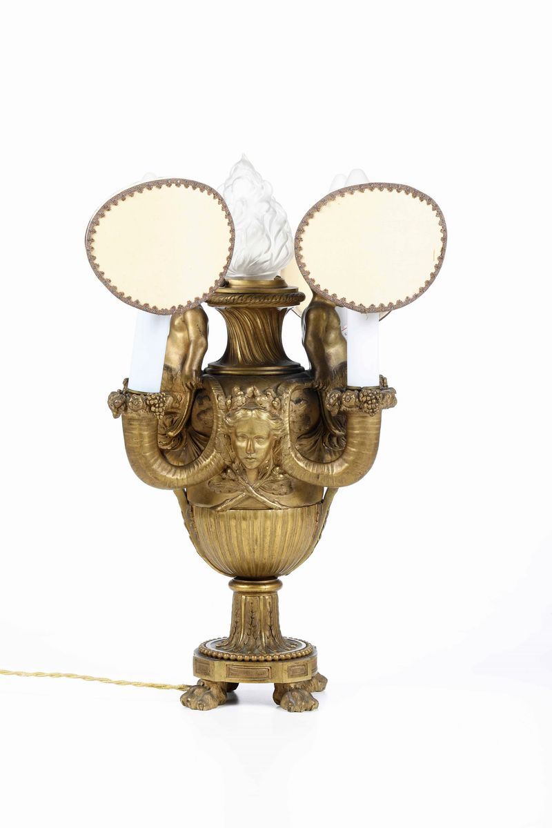 Lampada da tavolo in bronzo dorato. XIX secolo