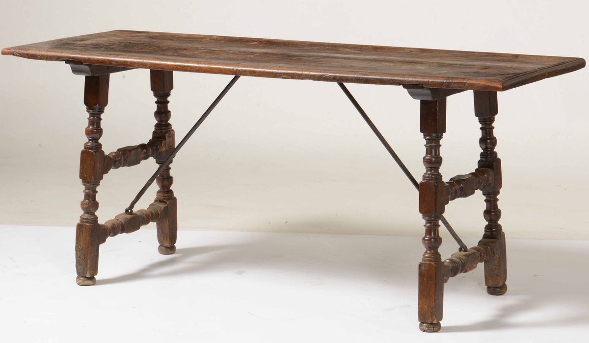 Tavolo fratino con gambe a rocchetto, elementi antichi