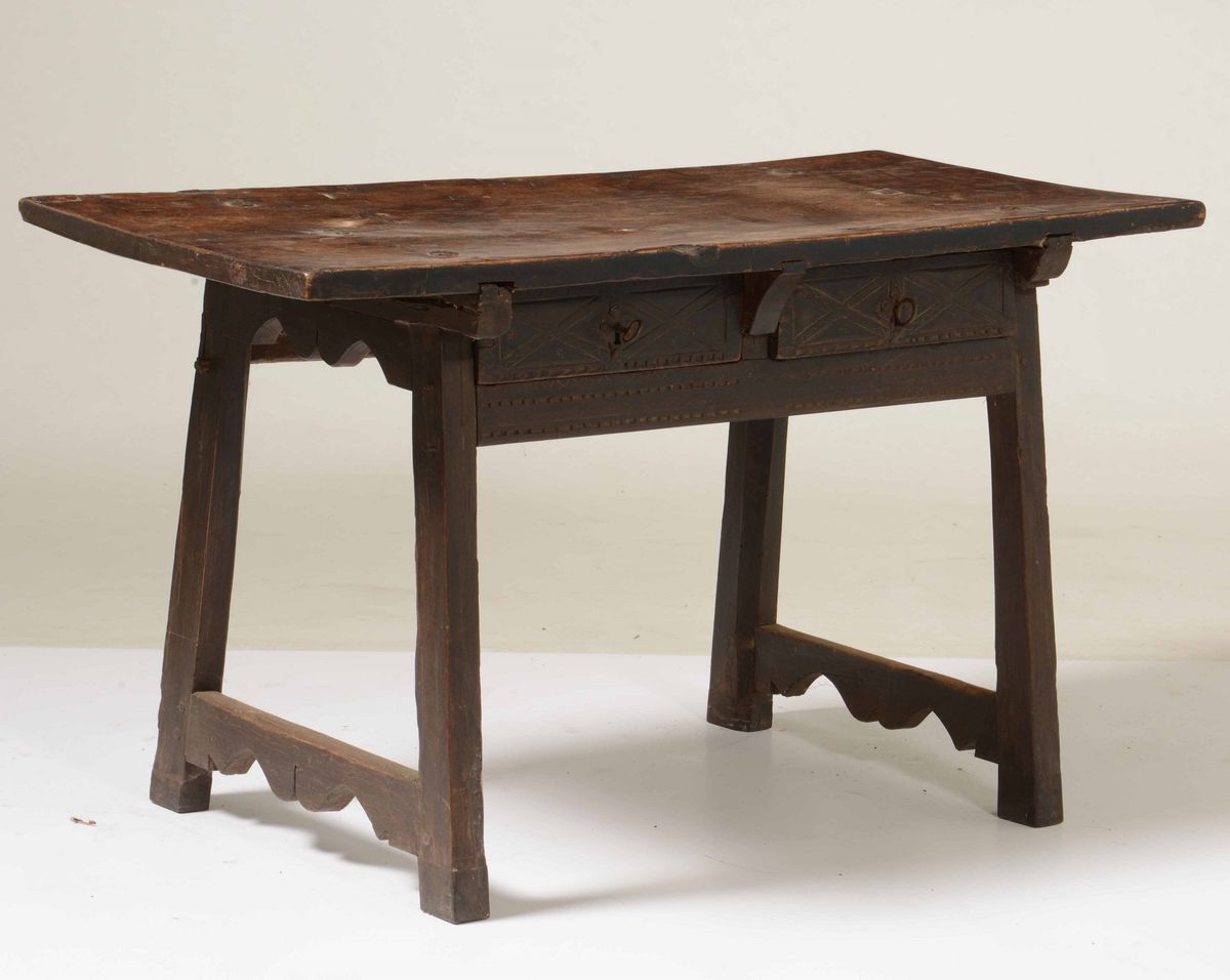 Tavolo rustico con due cassetti sulla fascia, XX secolo
